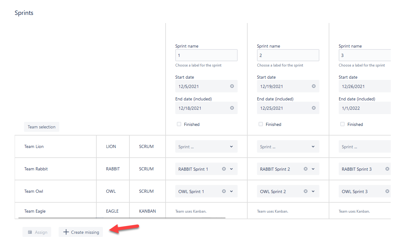 <figure><img src="https://2916206105-files.gitbook.io/~/files/v0/b/gitbook-x-prod.appspot.com/o/spaces%2FBAGNud2YIYXdGXre7dQK%2Fuploads%2F0n13TqZlup9tq446nnd3%2Fimage.png?alt=media&#x26;token=f1758093-01c1-438f-8c71-d5303de9e186" alt=""><figcaption><p>Select Create missing sprints</p></figcaption></figure>