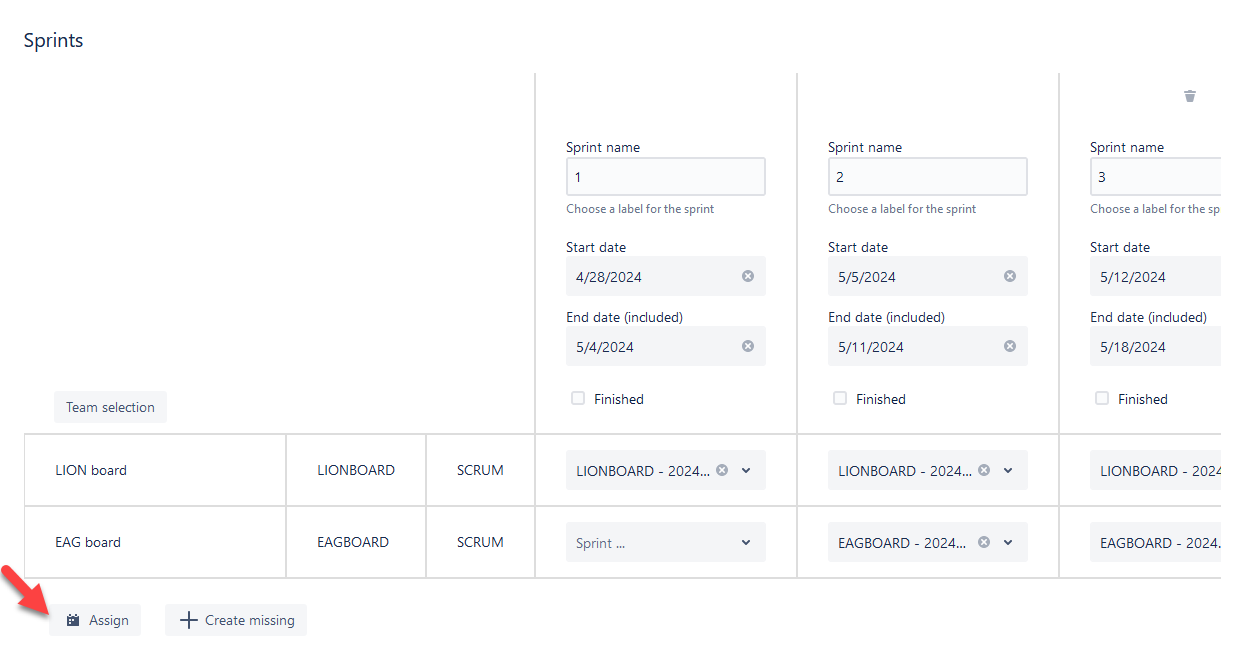 Ativo can create missing sprints directly on the Jira boards.&#x20;